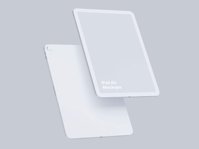Twi psds with smart objects. Floating ipad air tablets front & back psd mockup. Use this apple device psd to showcase your ui designs. Psd mockup of ipad pro in isometric view which is great to present your website, apps and ui designs.